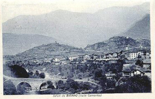Una cartolina dell’antico borgo di Bienno nel 1928