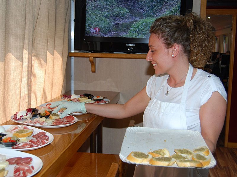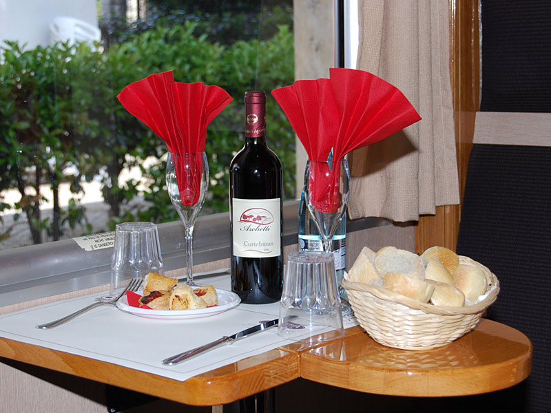 “Treno dei Sapori” is characterized by the structure and the charm of the early ‘900, but, at the same time, it is full of modern systems, such as air conditioning, multimedia devices, sound and video system and external camera system, that show the images of the landscape all around.